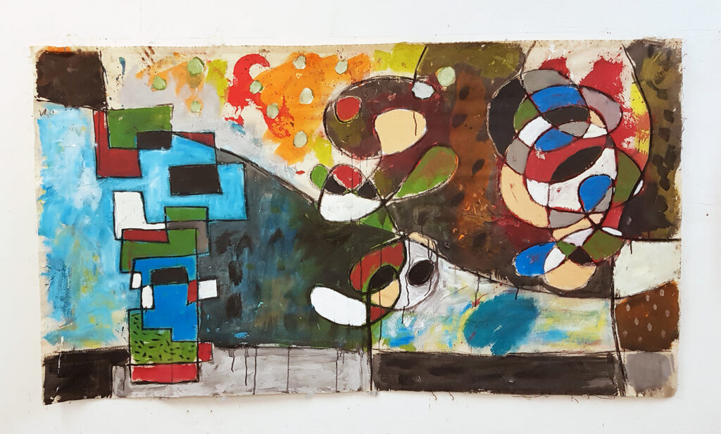 Titel: „o.T.“ Jahr: 2023 Kategorien: Malerei Technik: Acryl auf Baumwolle Größe: 97 x 176 cm Preis: auf Anfrage